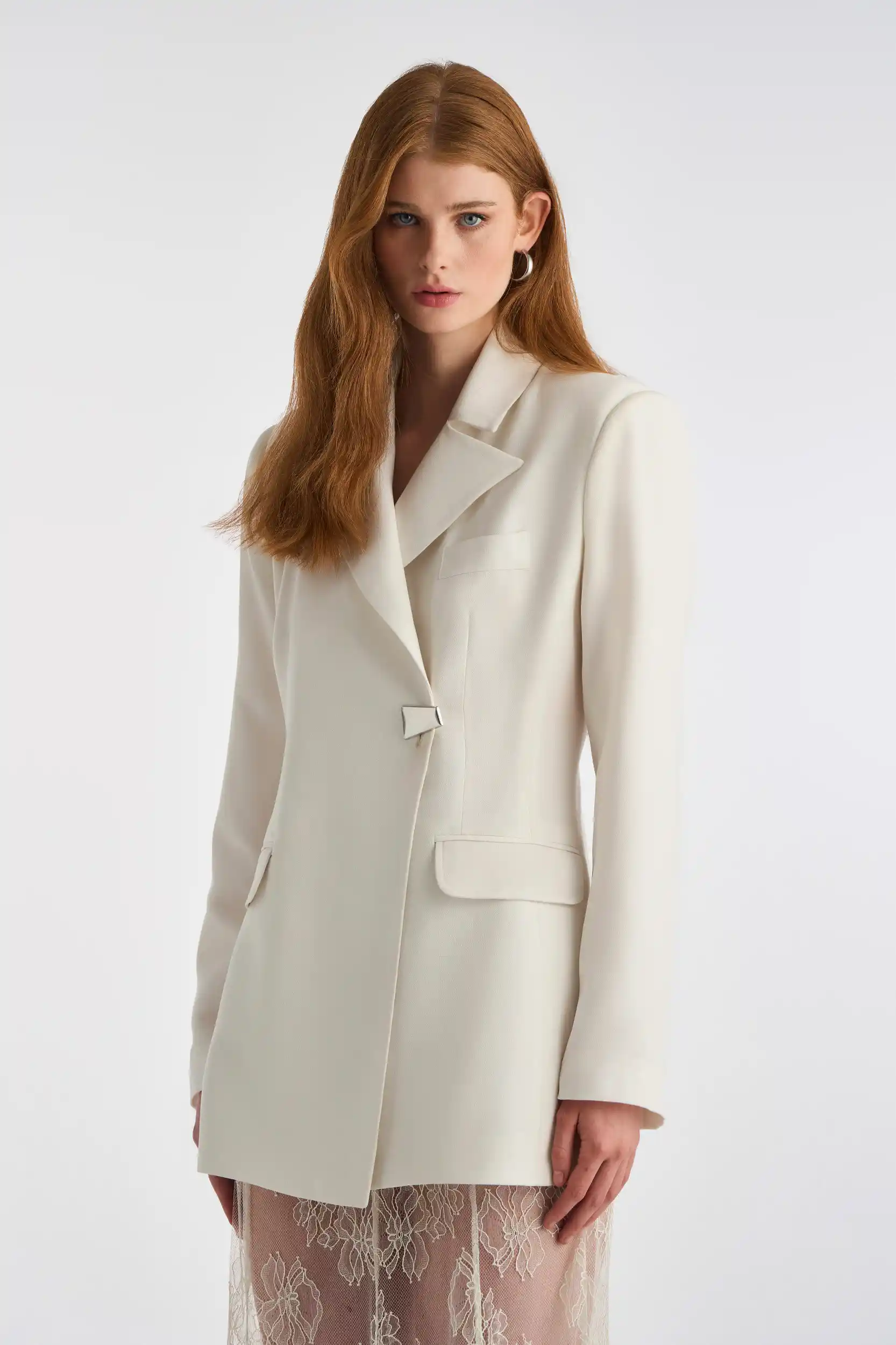Cross Button Blazer White