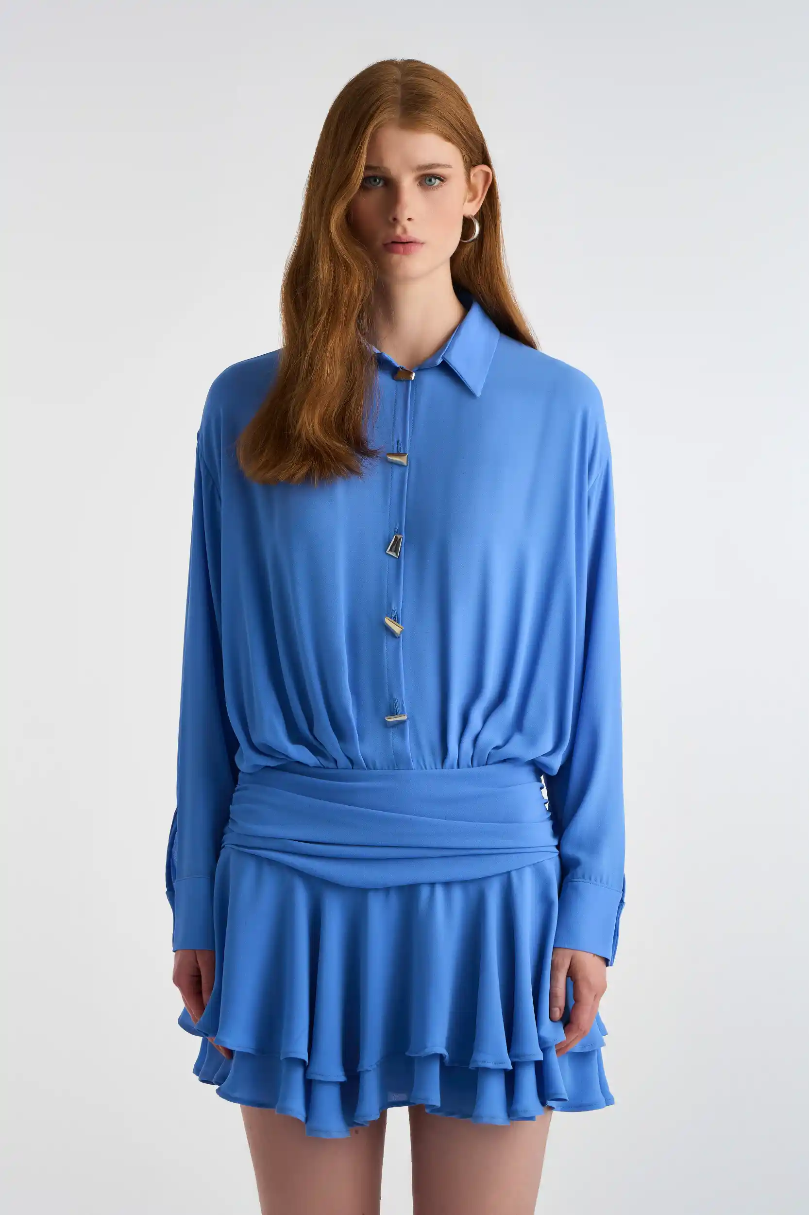 Crepe Mini Dress Denim Blue