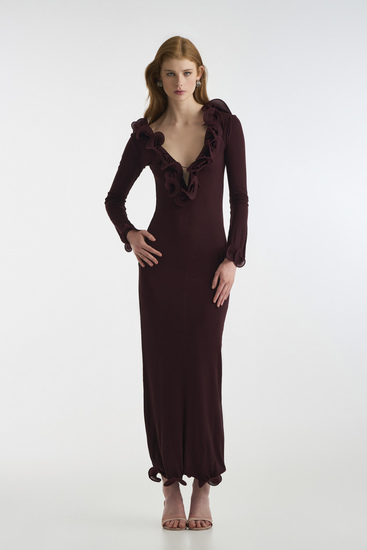 Lurex Maxi Dress Burgundy