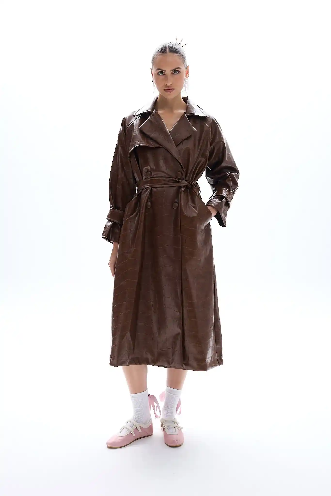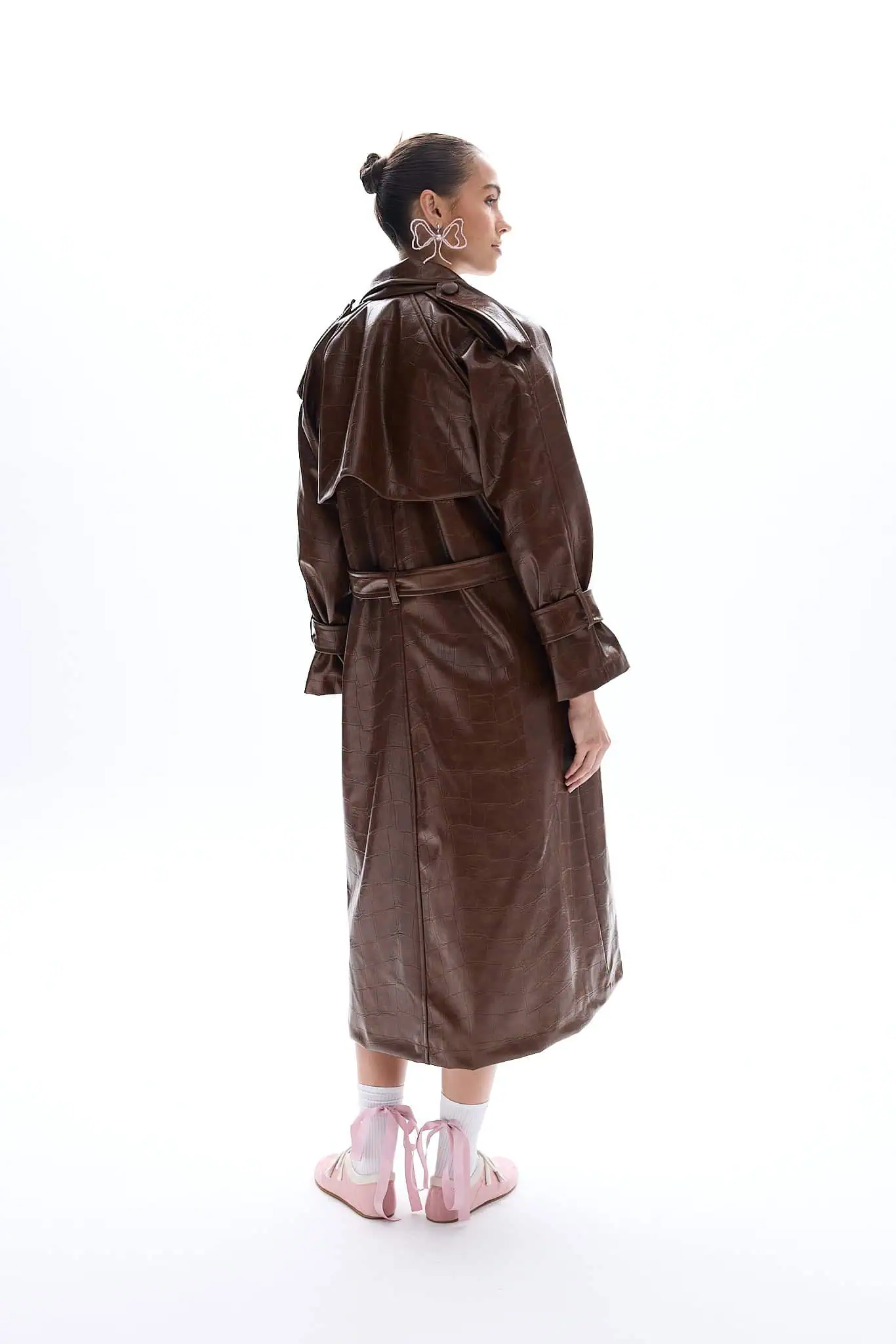 Cut from 100% cotton denim, this full-length coat is defined by the exclusive deer print created by Be A Bee Couture. Its classic trench-inspired design features a belted waist, structured shoulders, and wide lapels, balancing elegance with bold character. Finished with the house’s vegan leather logo label at the back, the piece transforms an outerwear essential into a striking statement. Perfectly layered over the complete Bambi Denim collection or styled to elevate everyday looks.