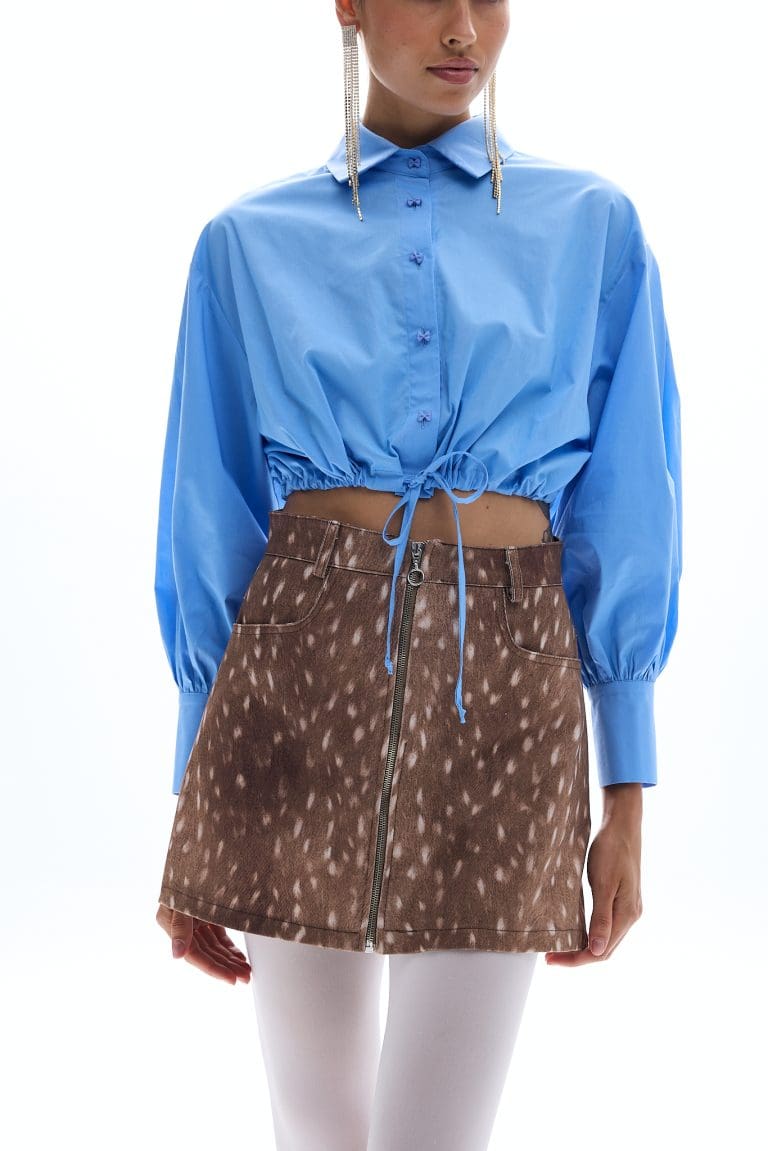 This cropped shirt is crafted from pure cotton and elevated with unexpected detailing. The voluminous sleeves and drawstring hem create a contemporary shape, while delicate bow-shaped buttons lend a distinctive touch. A redefined essential that balances structure with charm.