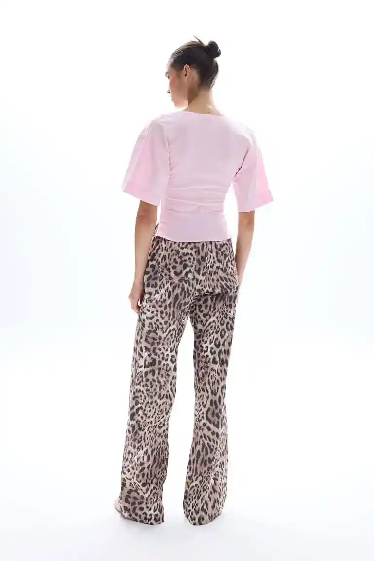 Made from 100% cotton, this piece reimagines the casual T-shirt in a fresh, tailored silhouette. With its deep V neckline, sculpted waist, and relaxed sleeves, it balances comfort and modern refinement. The soft pink hue adds a touch of romance, making it ideal for both everyday wear and elevated styling.